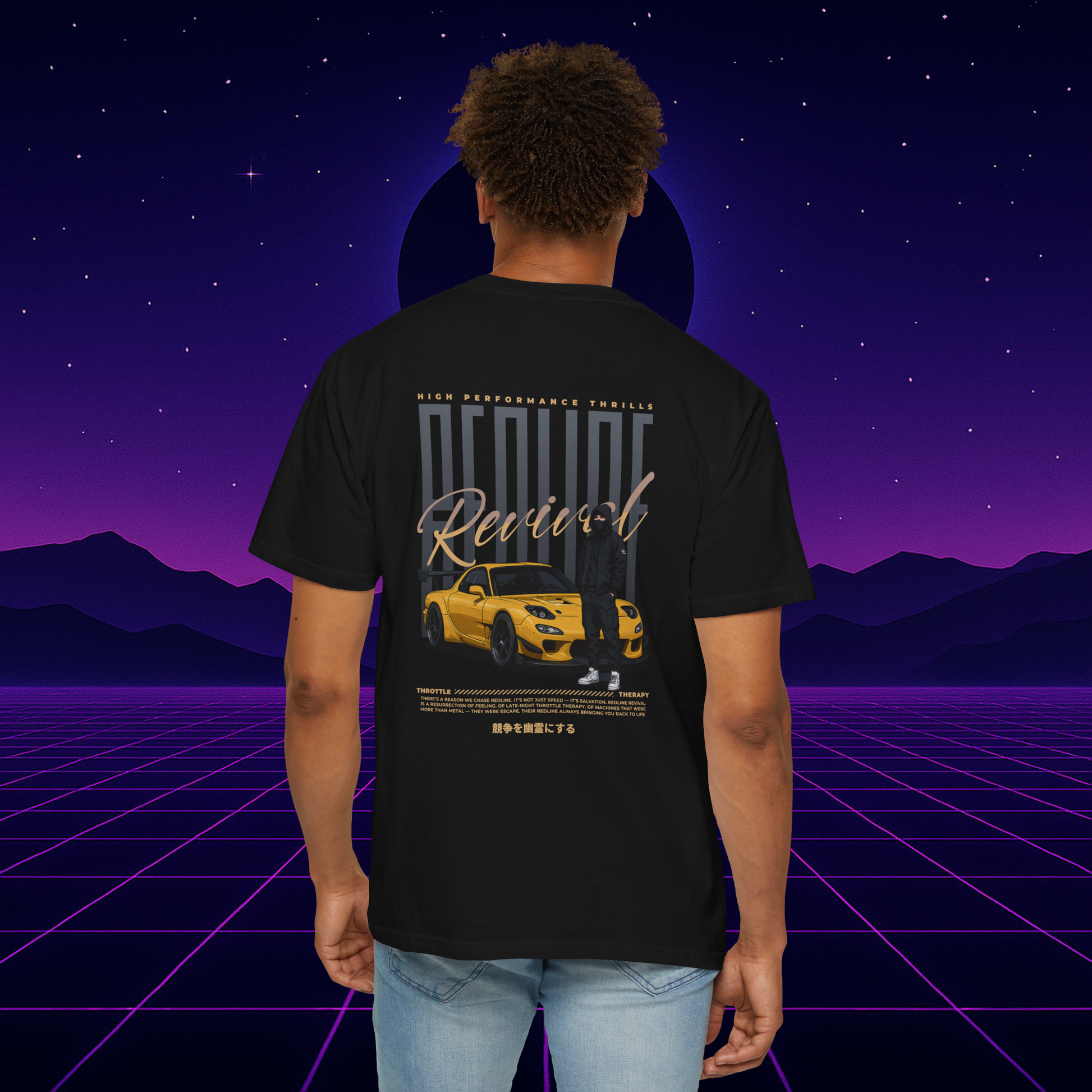 This tee channels the ghost of every perfect apex, every tunnel pull that ended in flames and grins. Featuring the legendary FD RX-7 in a striking yellow finish, aggressive lines, and a silhouette that defined a generation. One of Japan’s most feared street weapons.