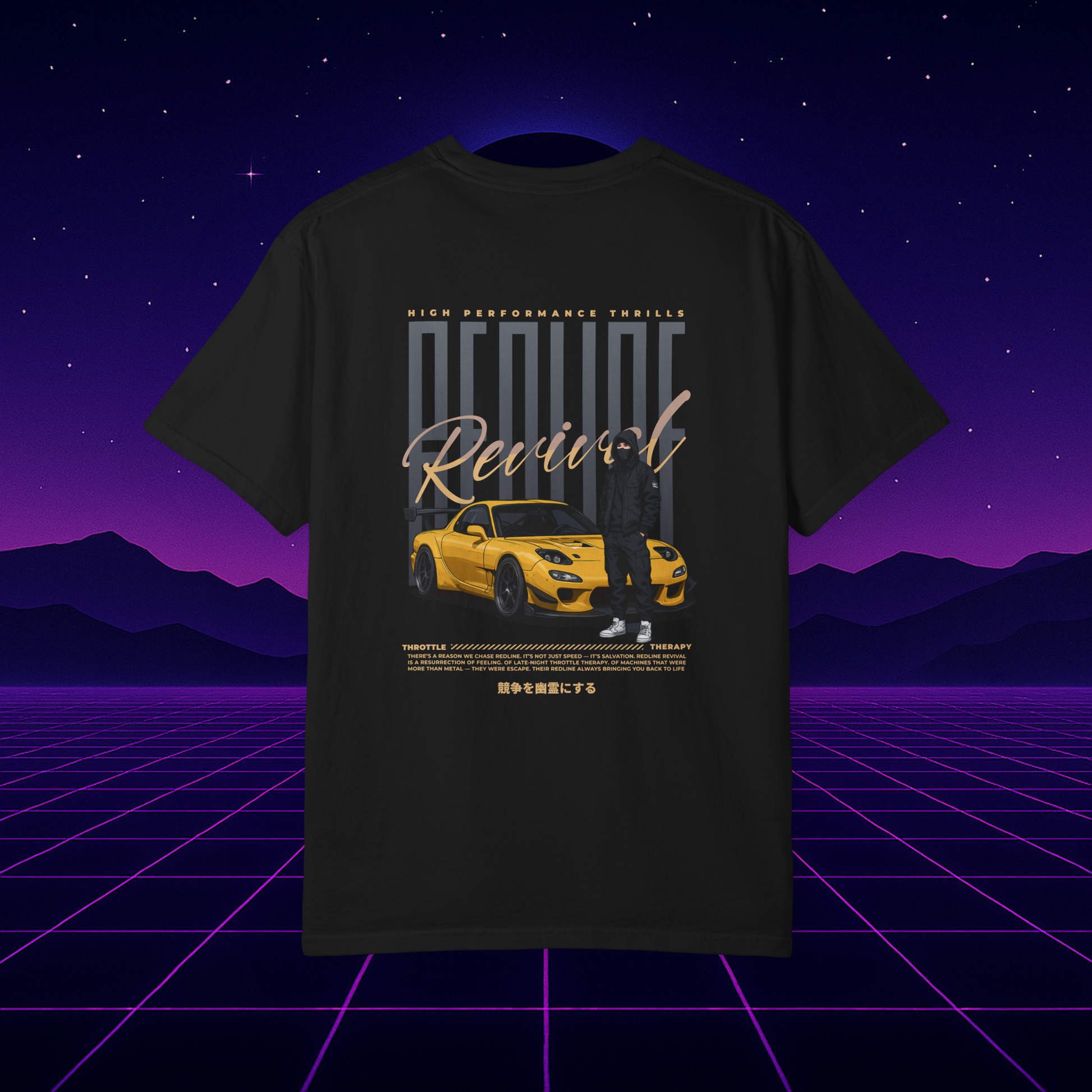 Framed by the bold “Revival” insignia, this shirt is more than style—it’s heritage. It’s for the ones who tuned deep into the night, who measured weekends in trips to the parts store, and who know some cars aren’t just machines—they’re ghosts that refuse to die.